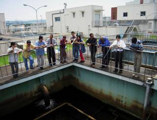 Inspection tour to a large purification plant to learn the actual sate of water quality control