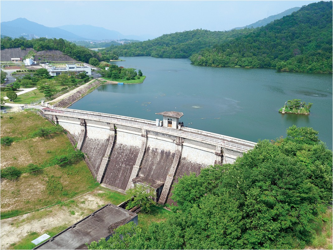 | 呉市の本庄水源地は,軍港施設の拡張に伴う水不足を解消するために大正7年(1918年)に海軍によって築造された貯水池です。貯水面積は28万3千㎡,総貯水容量は約196万㎥です。 当時の海軍土木技術の粋を結集して築かれた堰堤は,花崗岩を用いた豪華で美しい外観が特徴で,芸術的・歴史的に高く評価されています。 現在も呉市水道の基幹施設として現役で稼働しており,平成11年(1999年)には,稼働中の水道施設として全国初の「国重要文化財」に指定されました。 | |
