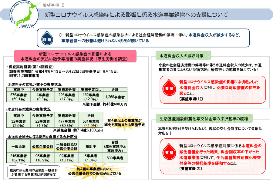 5.新型コロナウイルス感染症による影響に係る水道事業経営への支援について
